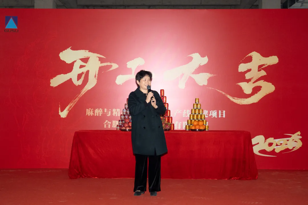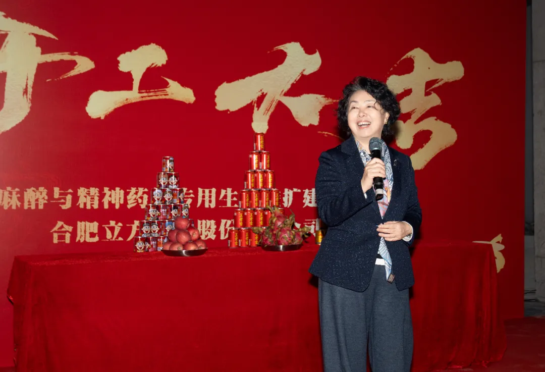 在开工仪式现场,邓总首先回顾了公司麻精产品的发展历程,着重强调了麻精产品生产资质的稀缺性,以及麻精产品获批上市对公司发展壮大的关键作用。她指出,此次麻精产线扩建工程不仅具有显著的经济价值,更延伸出重要的社会价值与责任。随着更多麻精产品的研发与生产,将为相关患者提供更丰富的用药选择和更有效的治疗手段。邓总表示,期待与施工方姑苏净化再次携手合作,在立方制药各责任部门的协同努力下,如期、高质量地完成高标准麻精车间的建设,为公司发展助力。